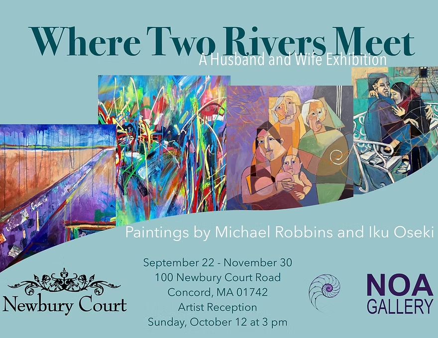 Iku, an art teacher at Fayerweather Street School in Cambridge, was named Artist of the Year (2019) by the Cambridge Art Association and Artist of the Month (April 2022) by the Somerville Arts Council. Her husband, David Robbins, is an artist, poet, psychotherapist, and Qi Gong teacher. His paintings combine color, texture, and rhythm to create dynamic, energizing surfaces.